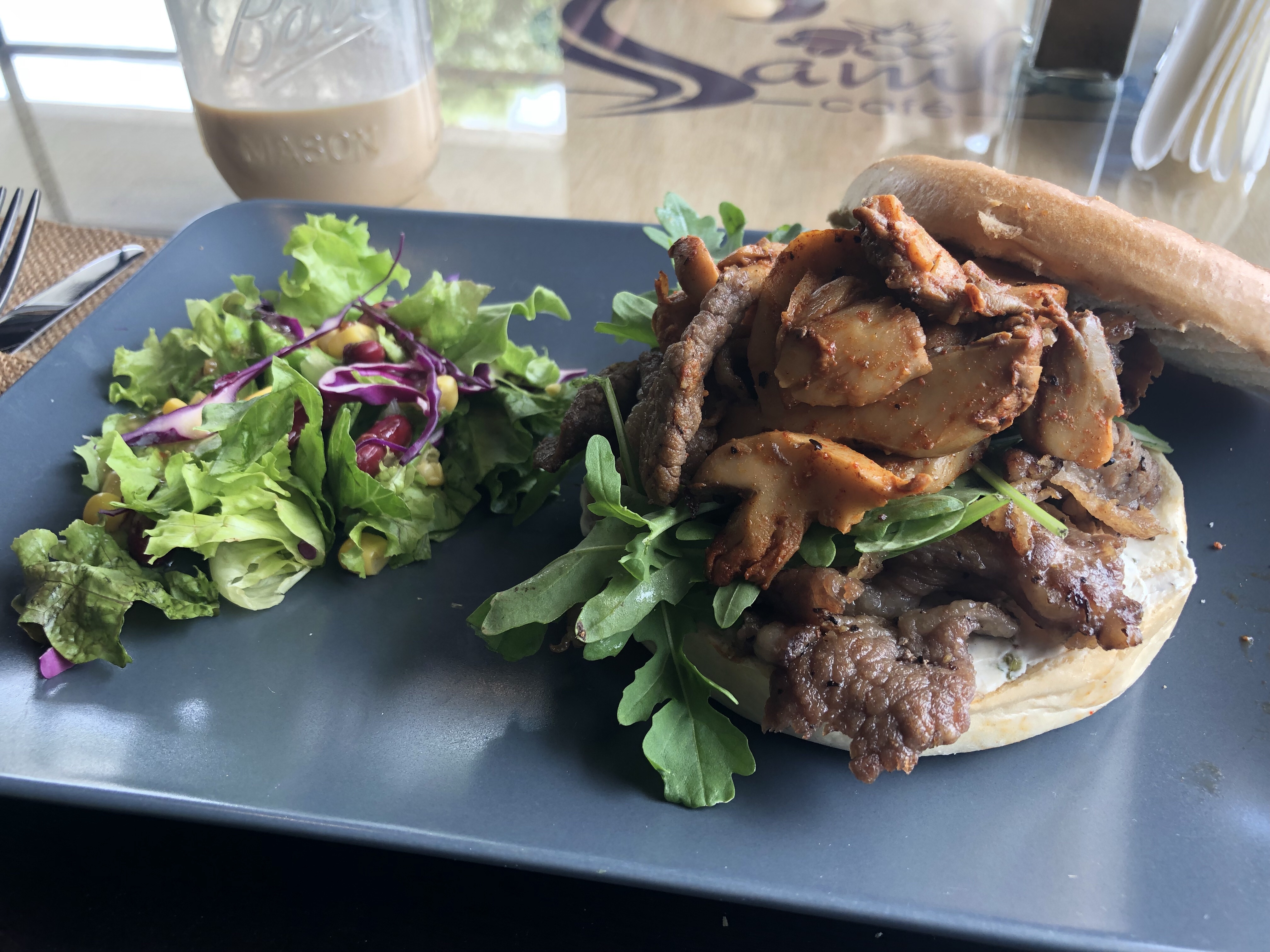 July 4: Lunch meetings are always fun if food is a part of it. On this day, I had a meeting while having this beautiful Deluxe Sandwich by Samba Cafe. It's Brisket Steak with arugula & spicy mushrooms! In the background of this picture, you can see some "leftover" Latte Macchiato. Yumminess all at once.