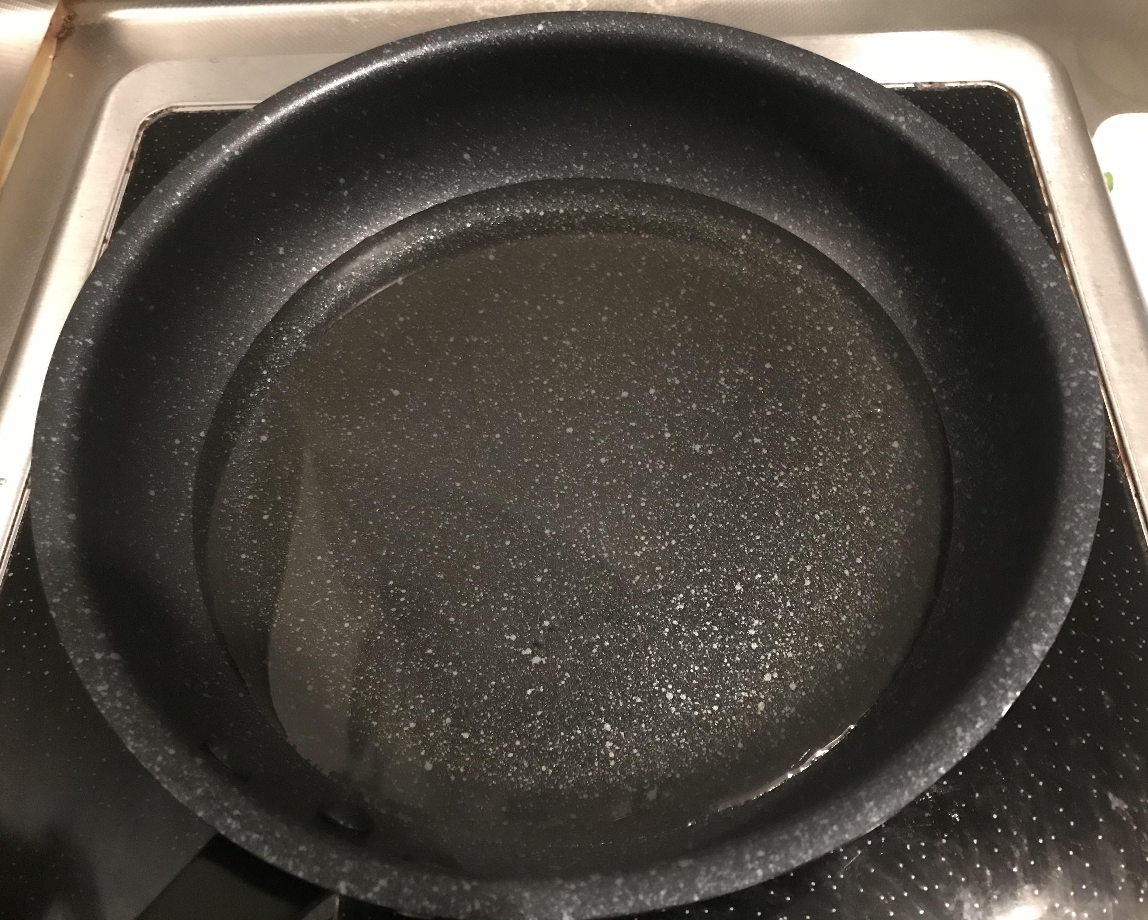 4.Put frying oil in the frying pan and heat the pan over medium-high heat until it gets to 200 celsius.