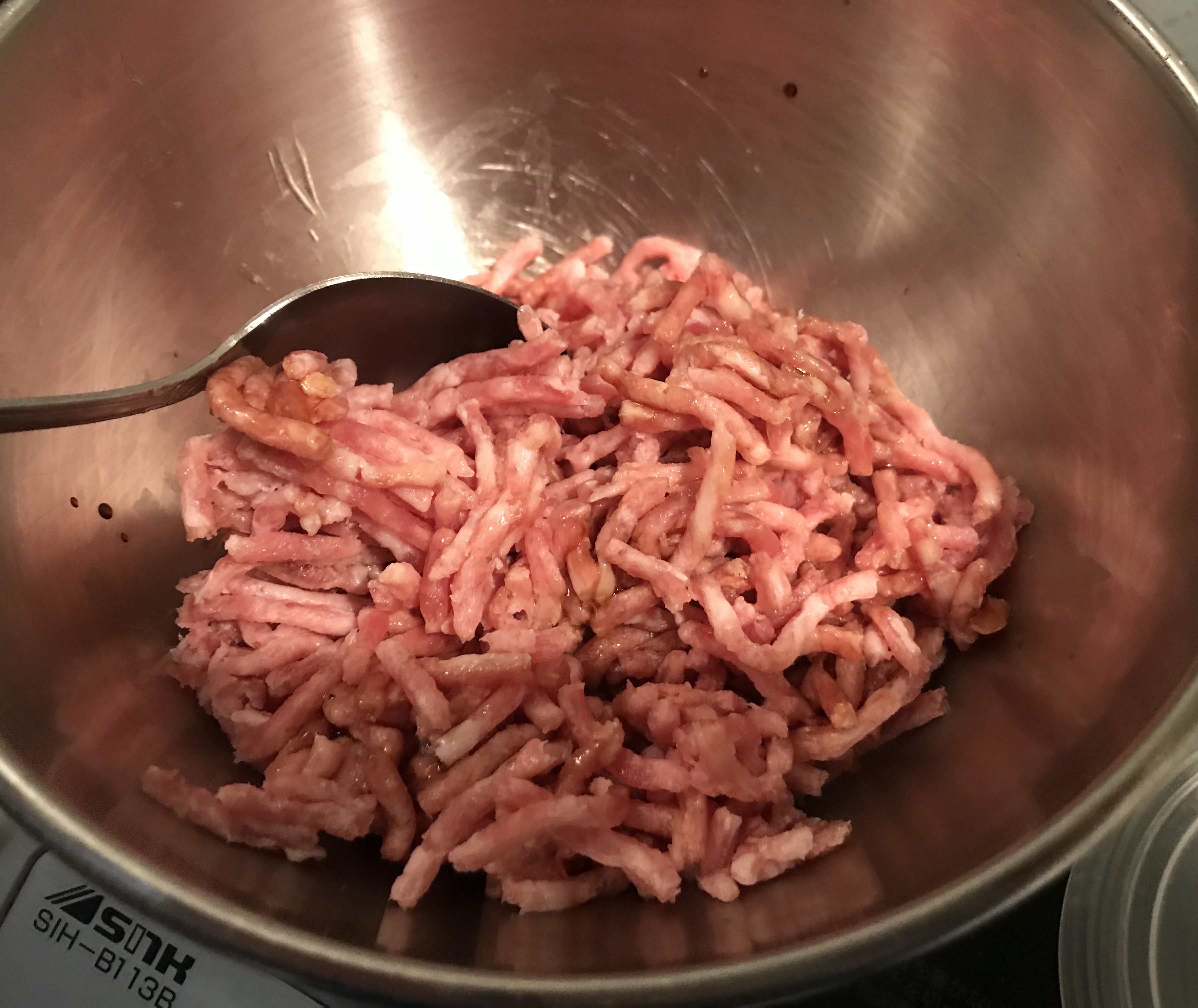 1.Put minced pork in the bowl and add oyster sauce, soy sauce, sugar and seasoning and mix together.