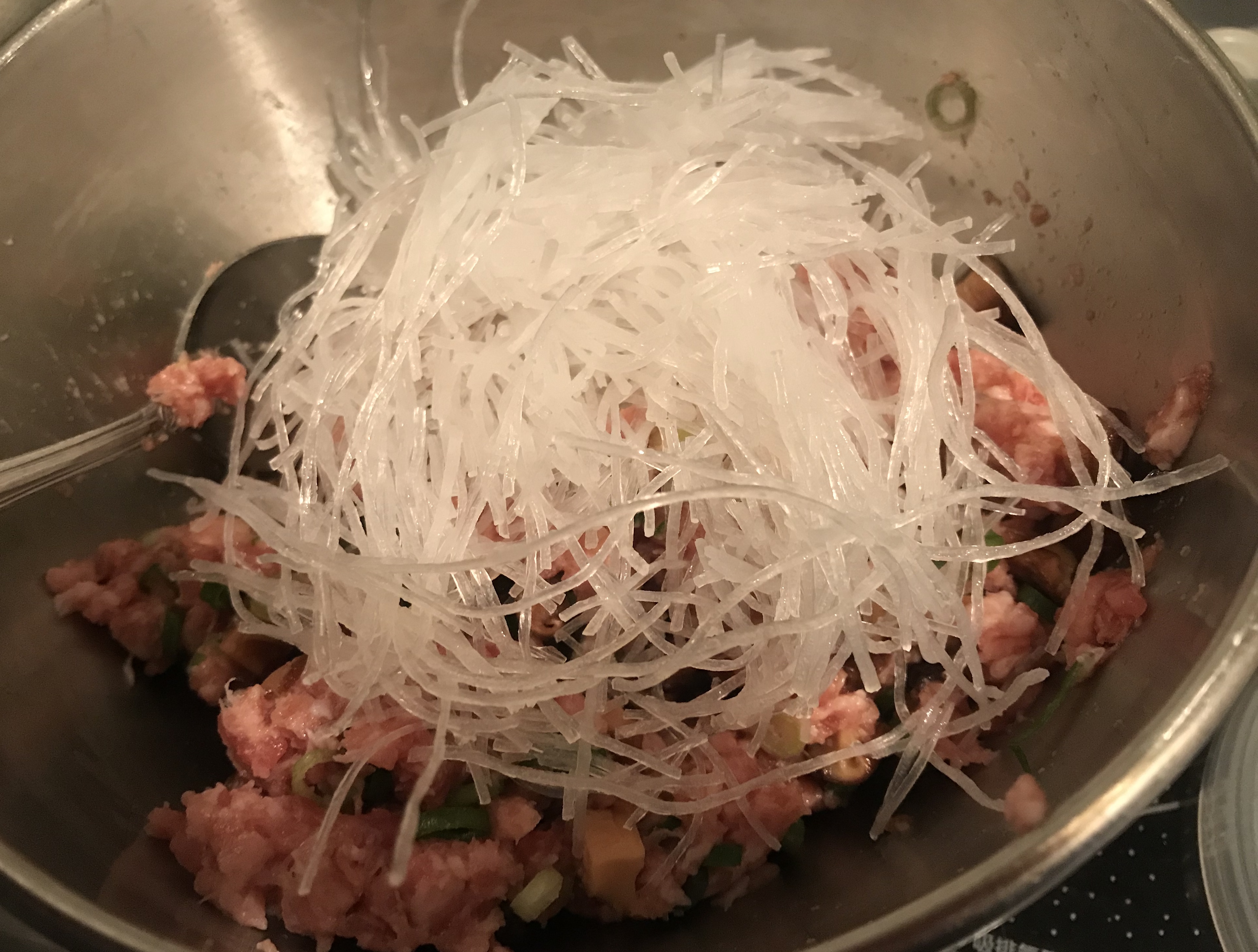 2.Add cut Shitake mushrooms, green onion and Vermicelli and mix together again.