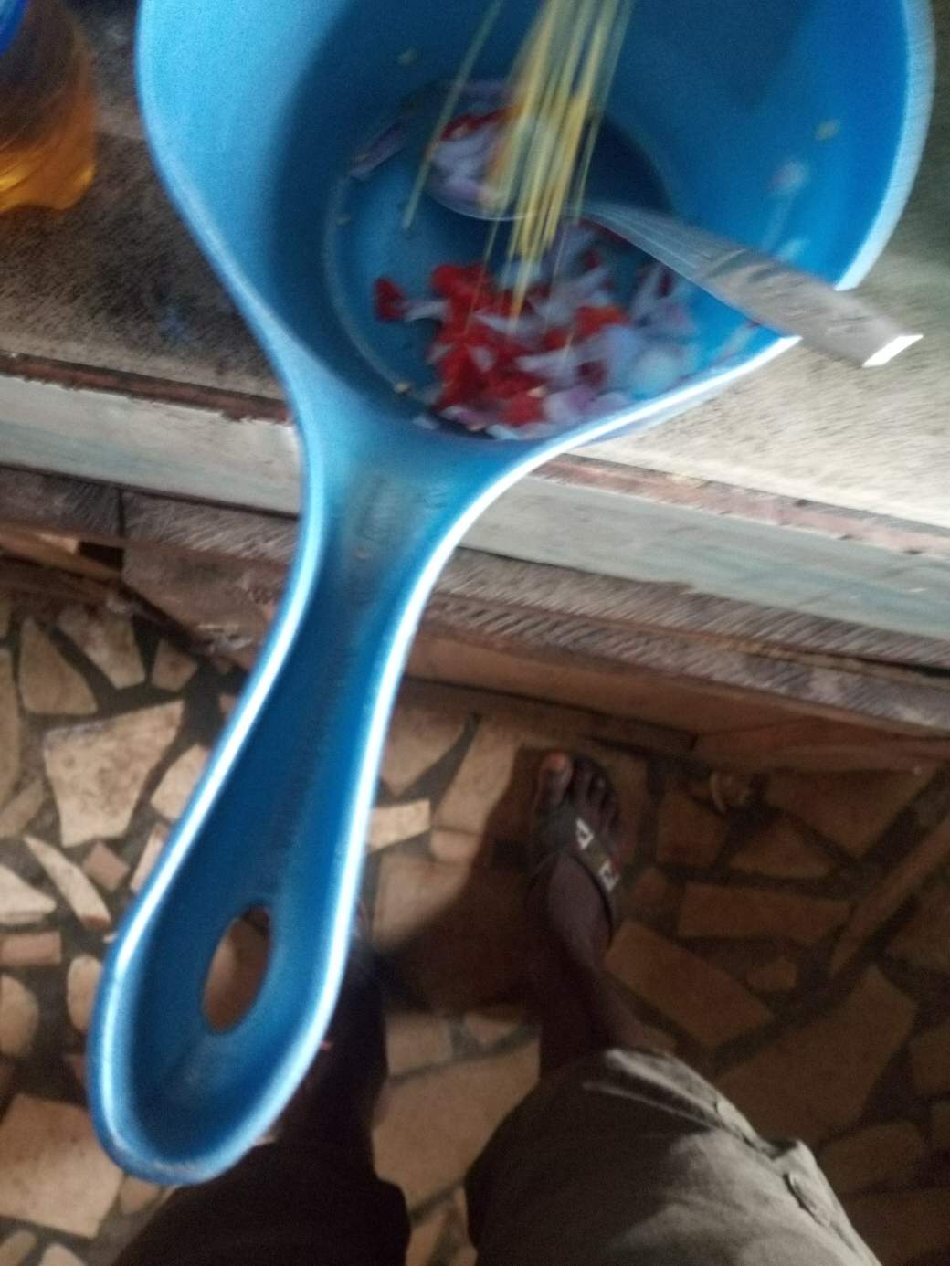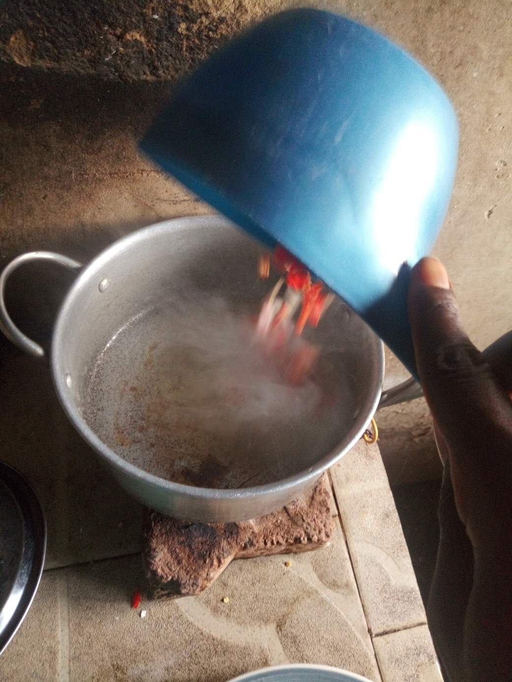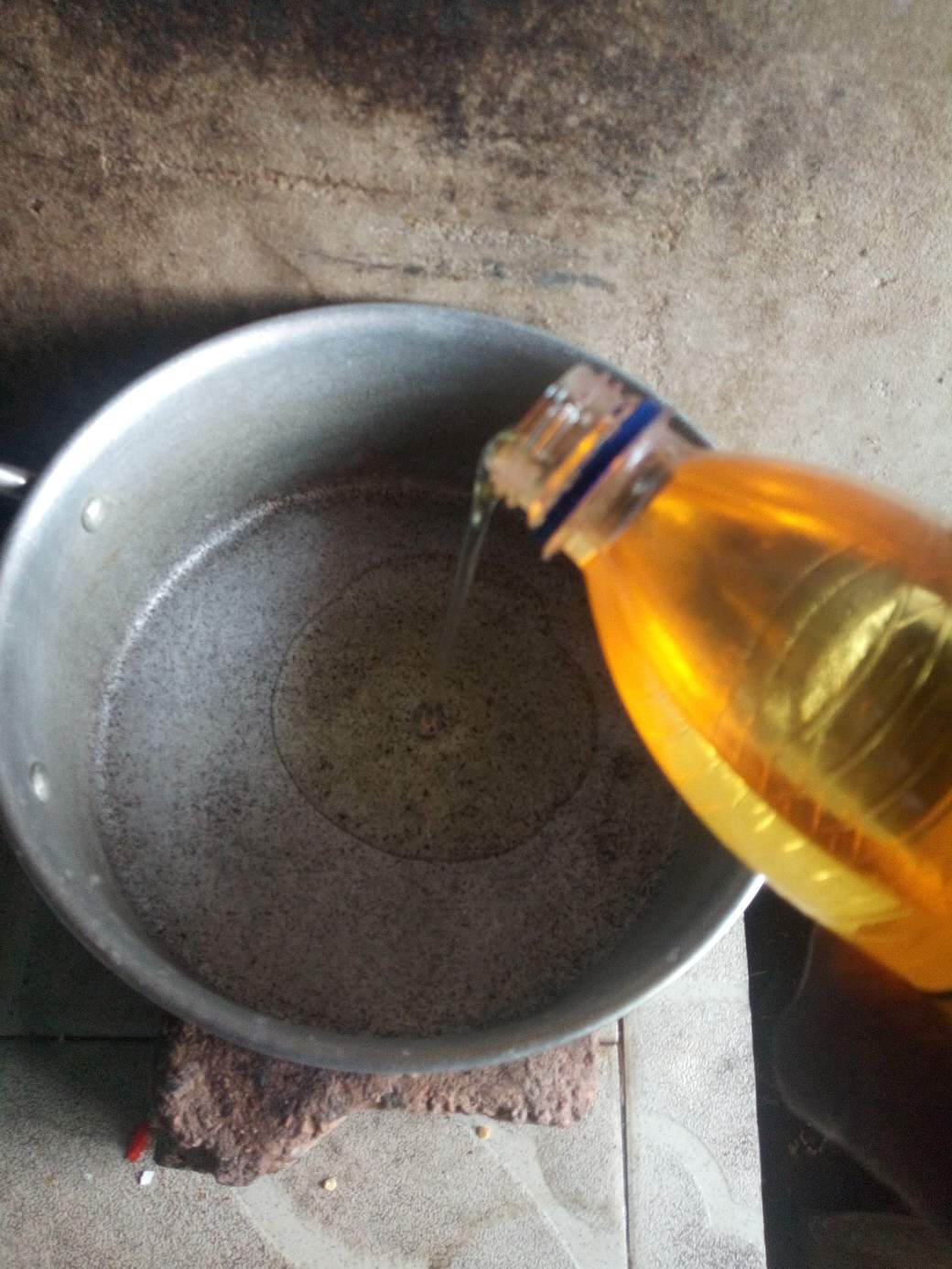After a while, I am adding the mixed pepper and onion into the groundnut oil