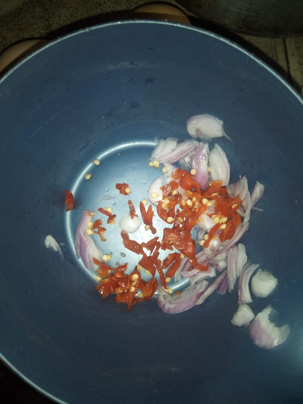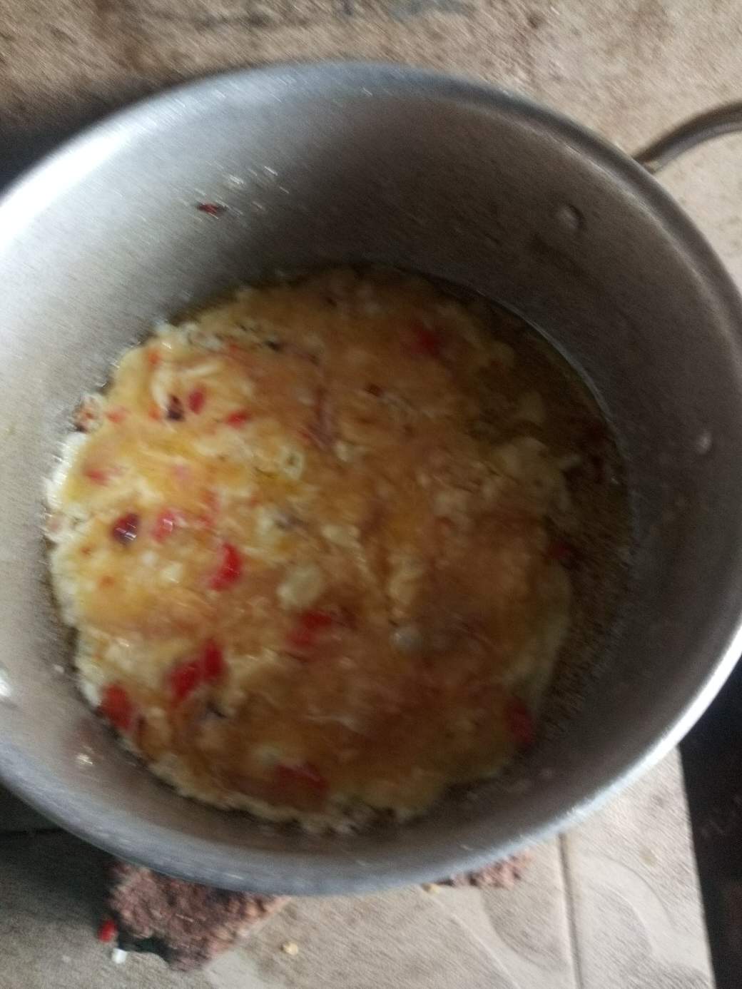 And to make the fried egg, you need onion,eggs, groundnut oil, pepper