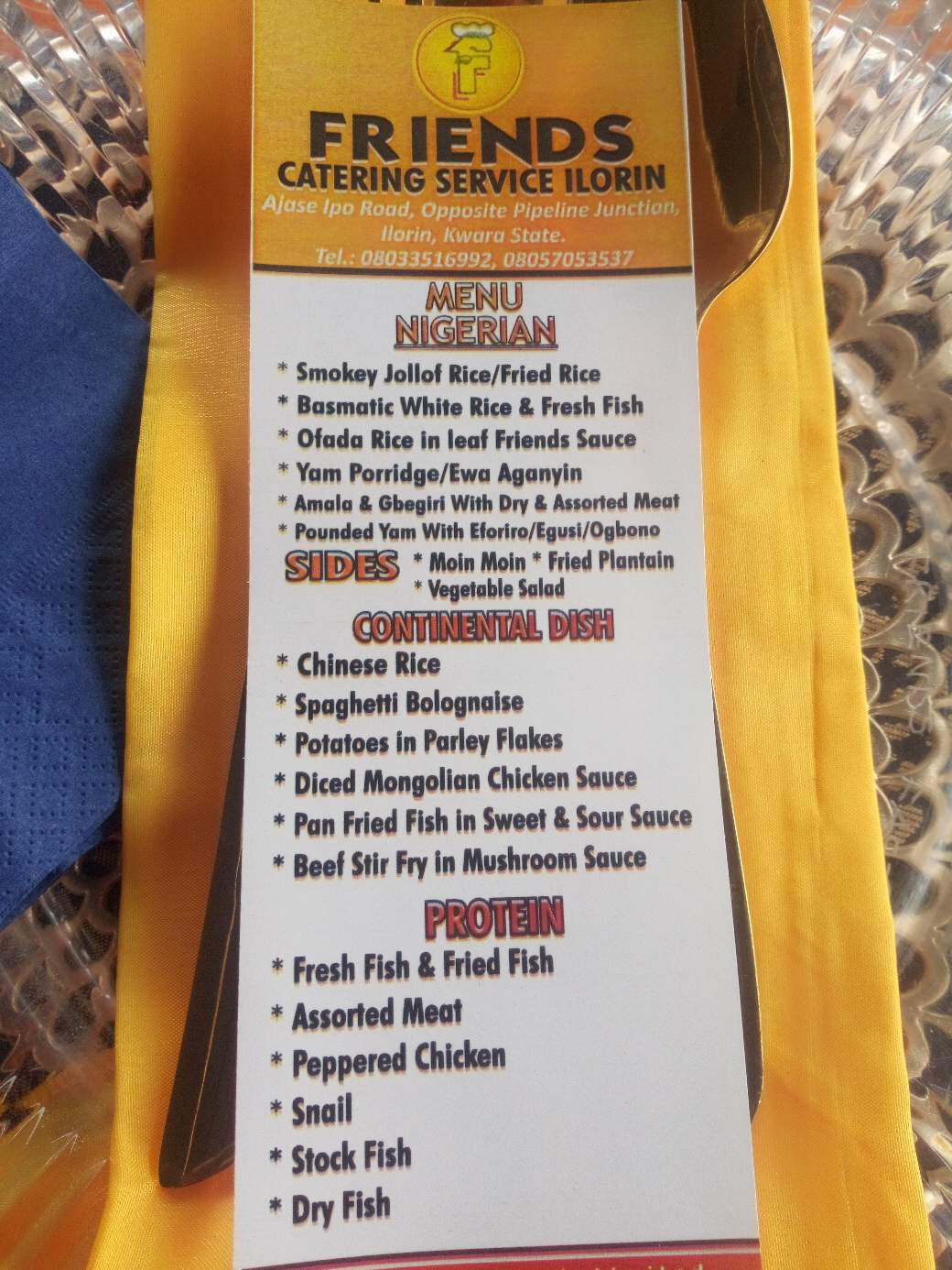 So because of this, the utensils that we gonna use tomorrow are going to be prepared a day before the event provided if the event is within Ilorin metropolis..