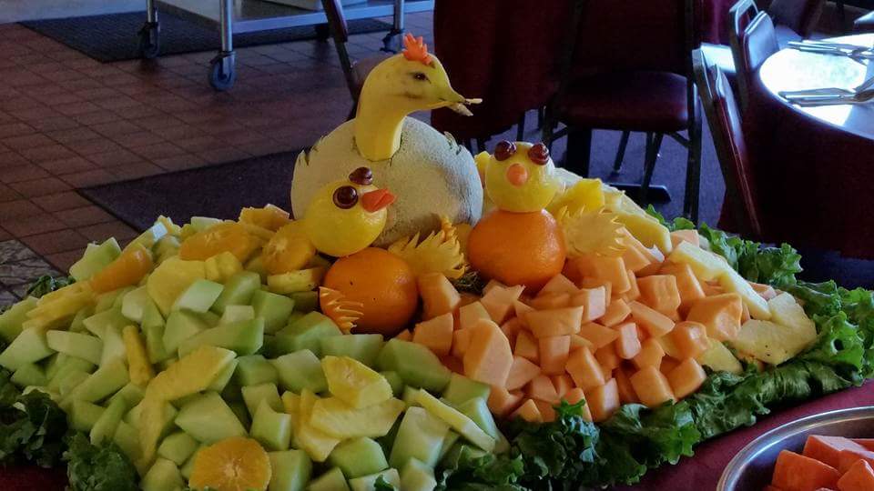 a beautiful sculpture of fruits