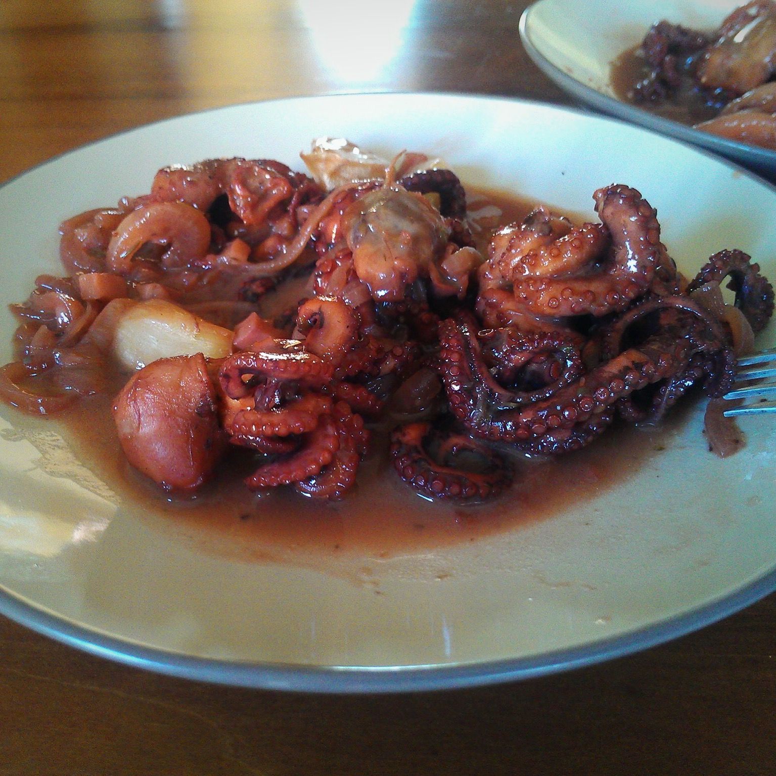 Luckily I kept photos of my first try to make Greek-like octopus stewed in red wine. It is incredibly delicious and easy to cook.