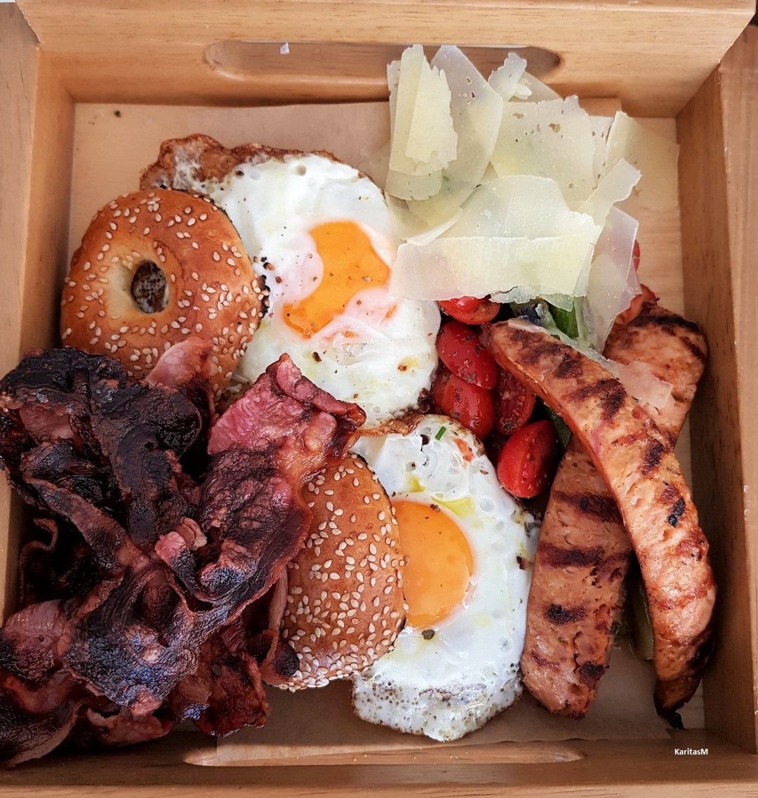 The other dish we all agreed was tops . . . included the fried eggs served with yummy sausages and crispy bacon that was cooked just the way we asked for . . . nearly burnt!