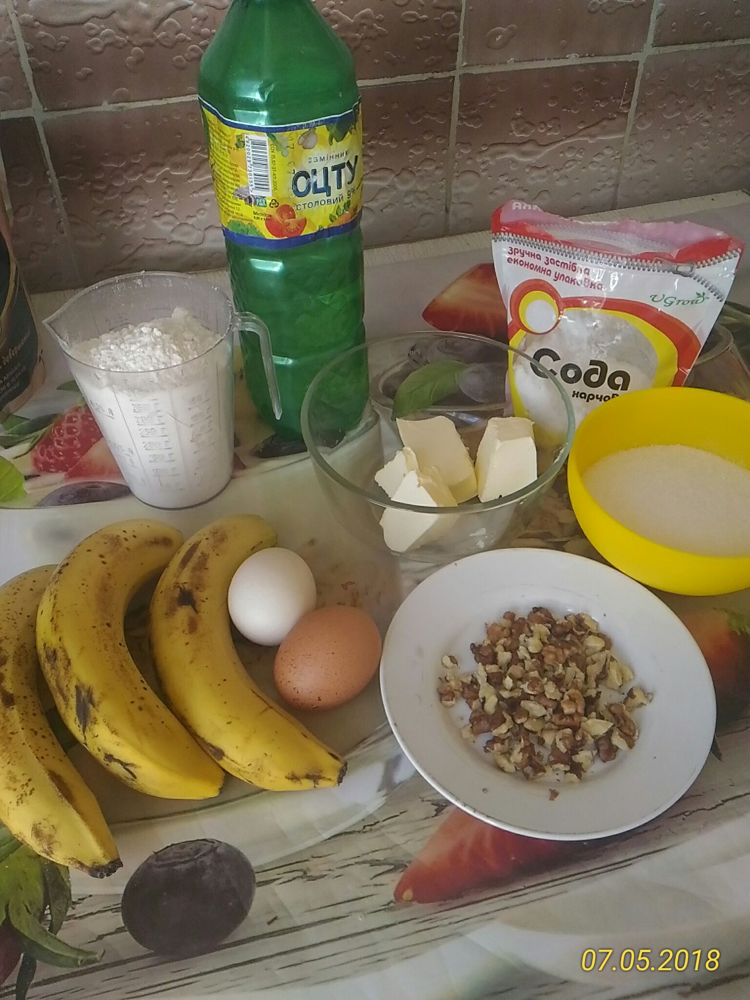 Banana cake with walnuts.
