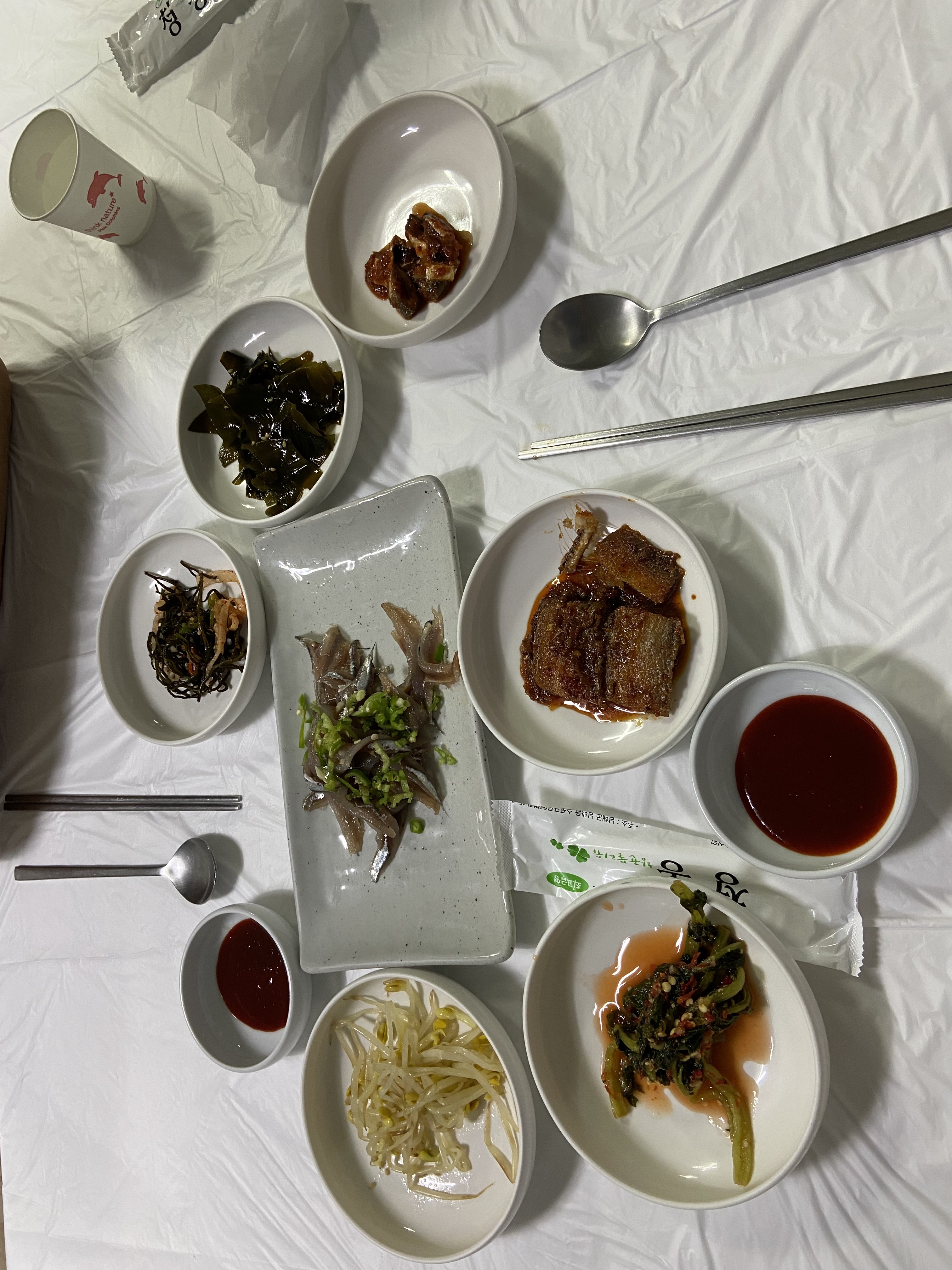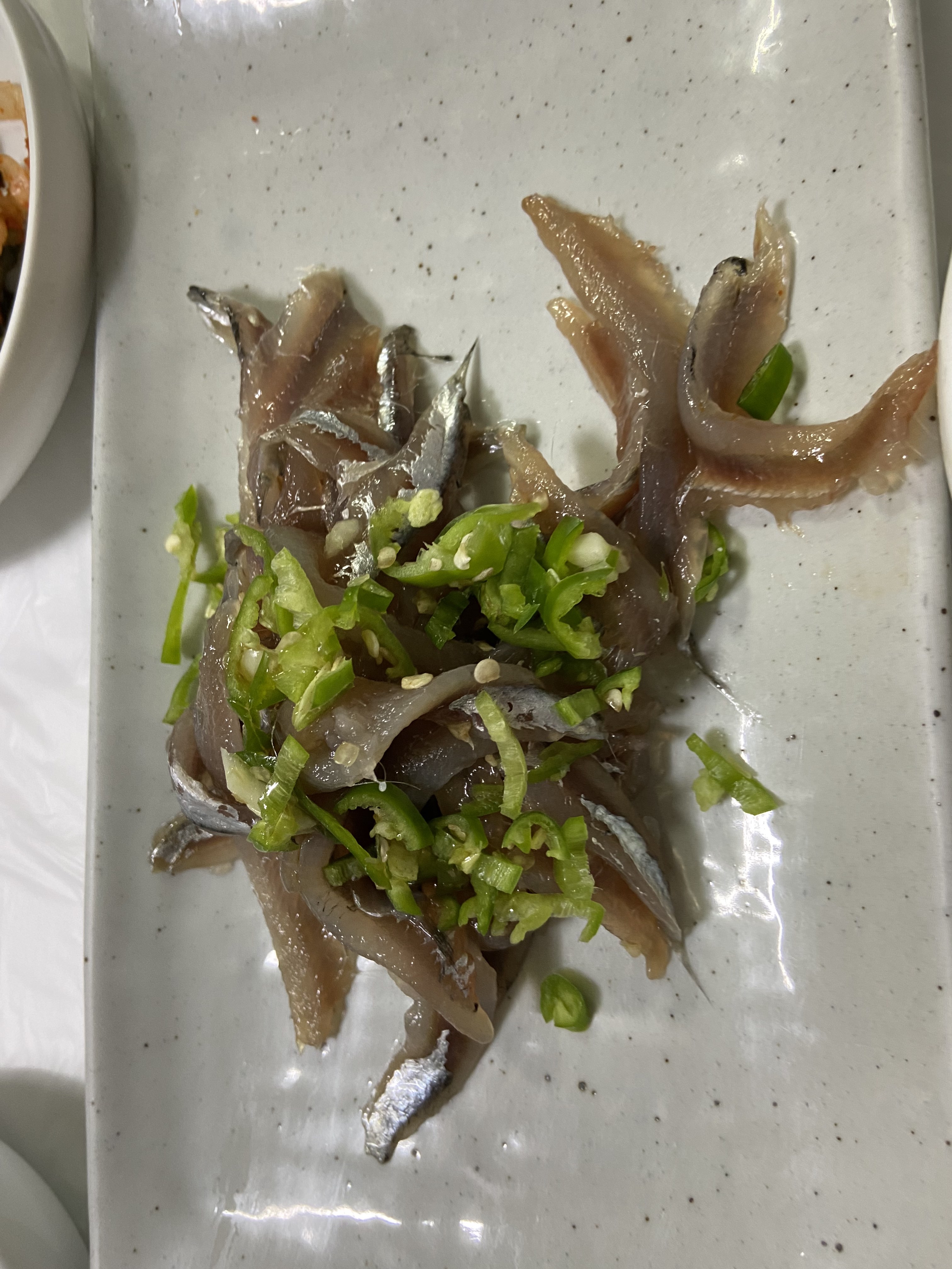 반찬을 내놓는데 멸치조림이 한접시 나온다.