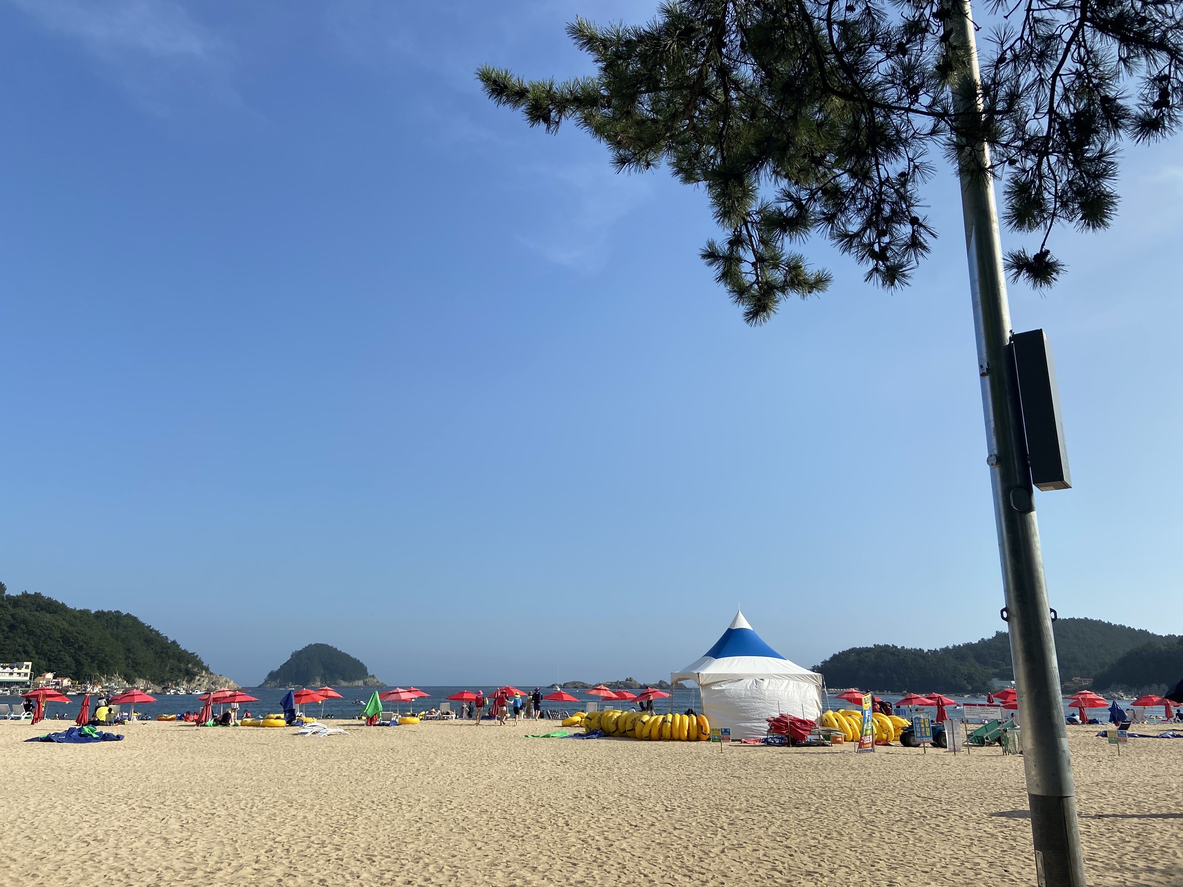 상지 해수욕장에 가서 의자를 놓고 바다 구경을 했다.
