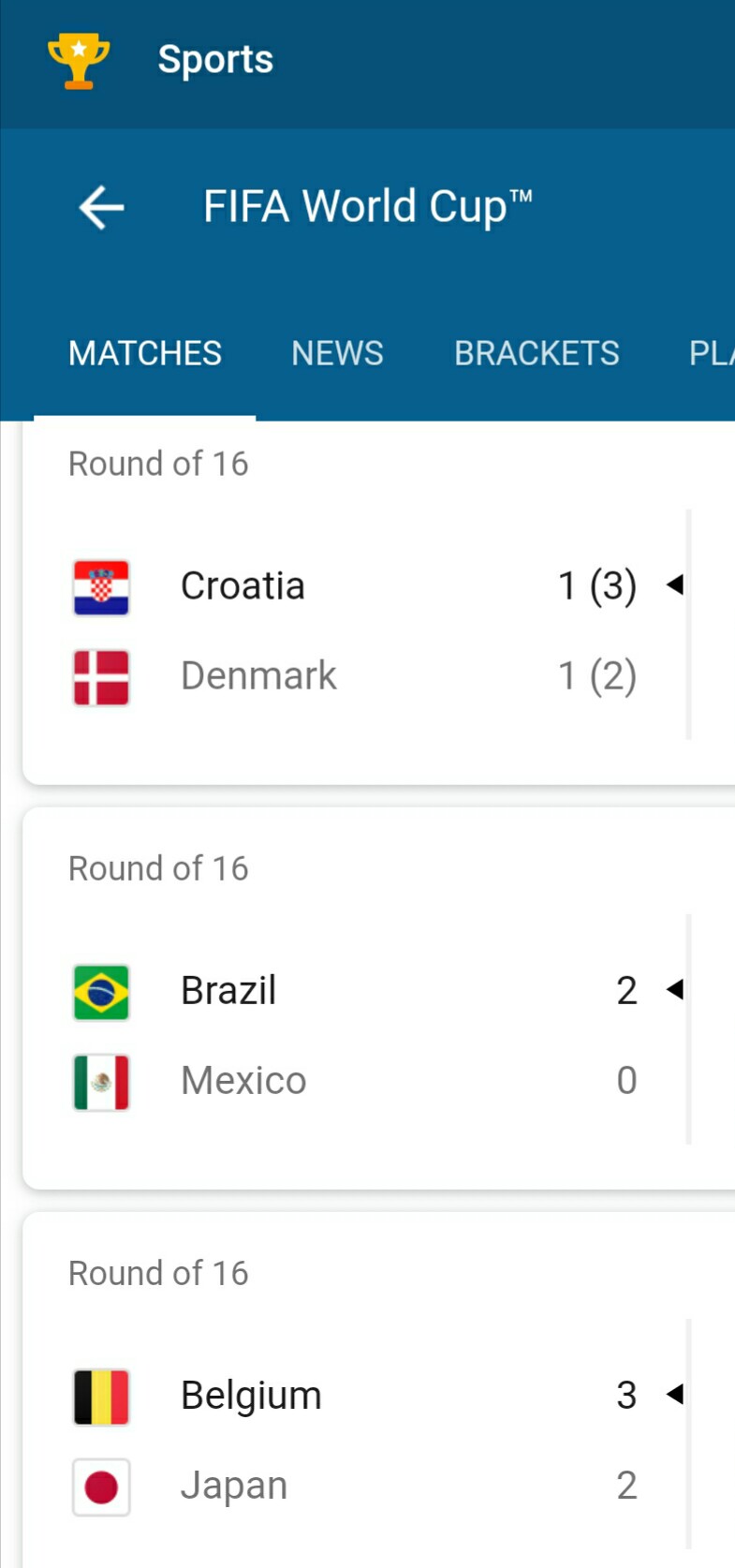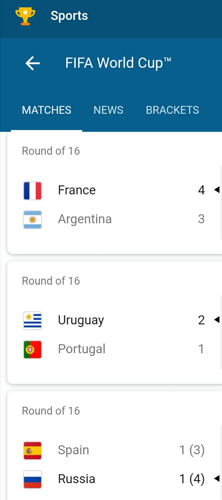 FIFA WORLD CUP (ROUND 16 RESULTS)