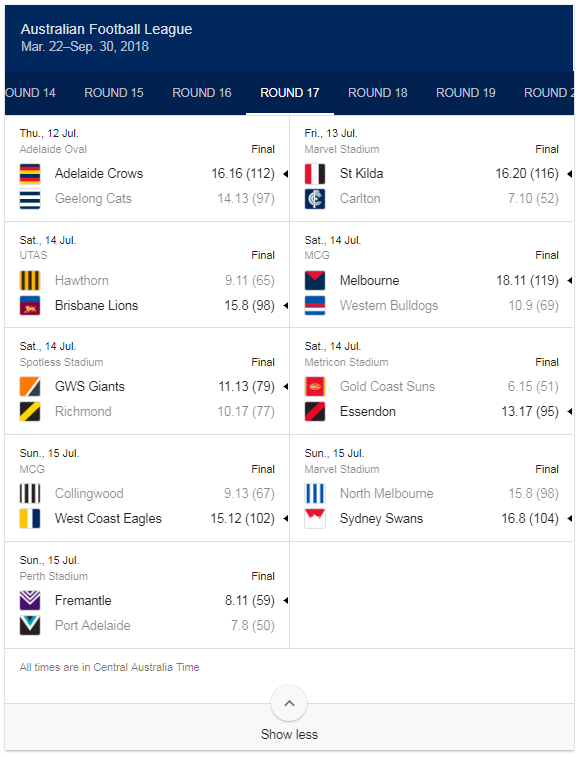 Just click here to view and select the AFL Round 17 tab in green.