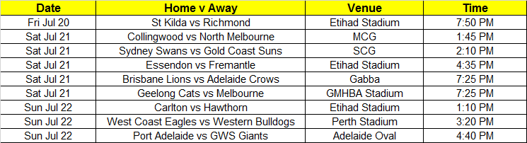 All tips must be entered by Friday 20th July @ 7:20pm (AEDT)