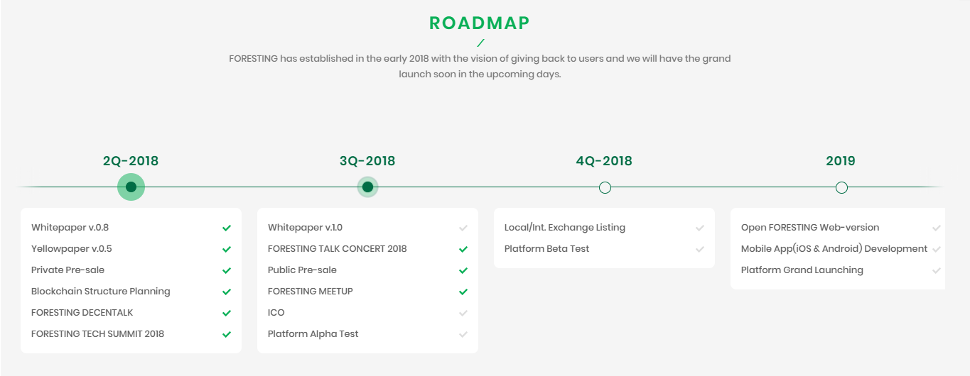 Foresting adalah sebuah proyek blockchain terbaru yang sedang mengembangkan platformnya untuk menyediakan tiga layanan utama. Ketiga departemen tersebut adalah: Media sosial Kehutanan, Foresting Bank dan Foresting Lab. Foresting adalah platform media sosial yang bertujuan untuk mendistribusikan nilai adil kepada pemilik platform. Foresting Bank akan memberikan layanan keuangan kepada para pengguna platform yang akan membuat konten. Ini akan bertindak seperti bank digital bagi pengguna. Foresting Lab akan mendukung dan membantu Foresting Network tumbuh. Foresting Network menyerupai komunitas platform dan pembuat konten.