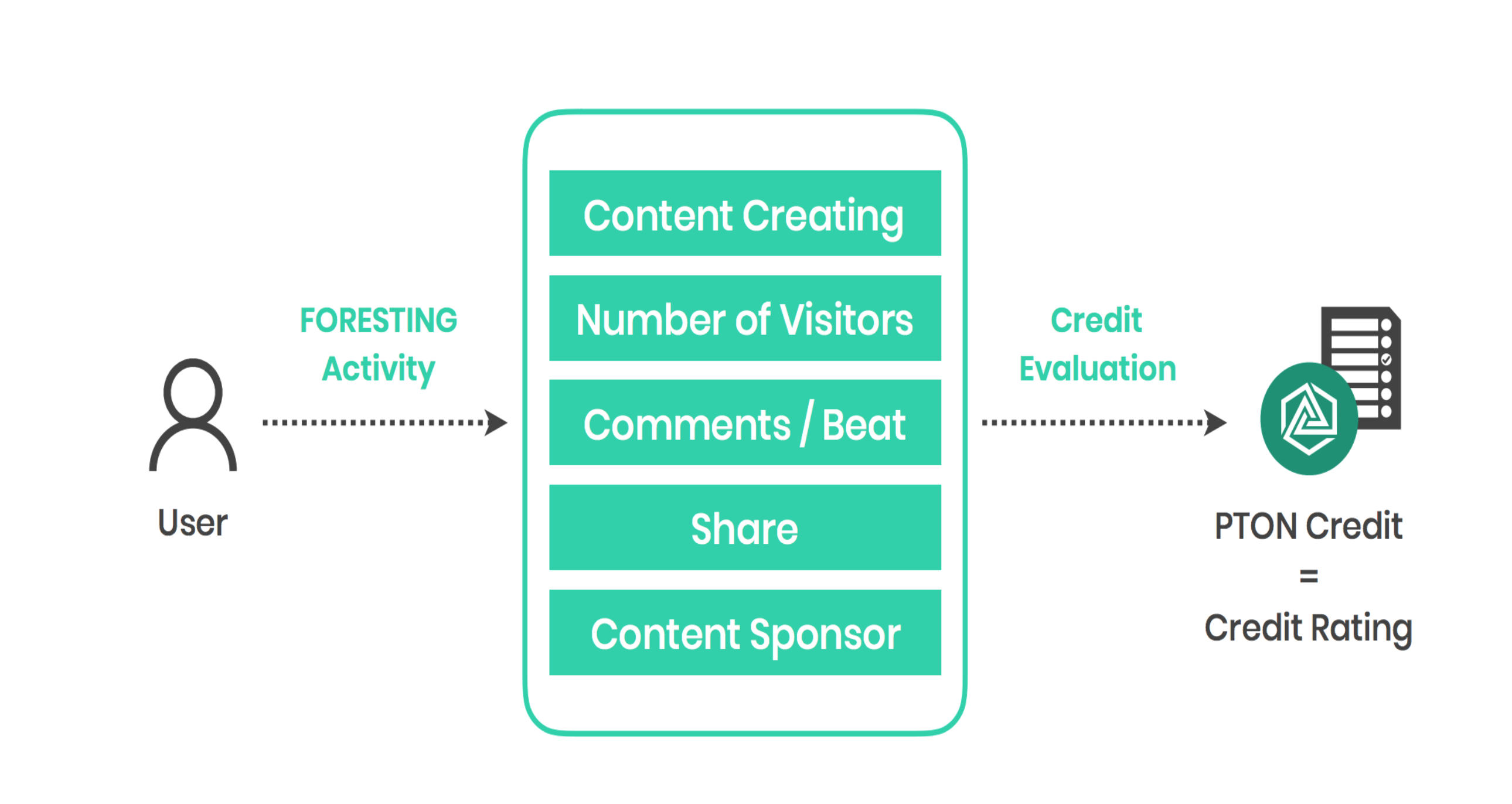 Dengan Foresting, pengguna dapat menggunakan koin PTON untuk mendapatkan bayaran untuk konten mereka. Sistem kehutanan hanya didasarkan pada pembuatan konten dan fokus pada sistem pemungutan suara pengguna. Ini lebih baik daripada menilai konten lalu lintas dan memungkinkan mereka untuk berbagi informasi dengan cara yang terdesentralisasi.
