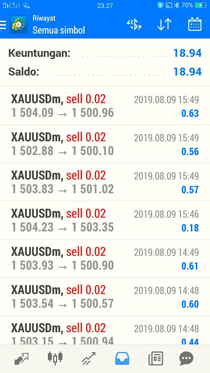Dari bebarapa pair yg saya coba, pair inilah yang paling cocok buat saya disamping pergerakan pasar yg sangat dinamis juga mudah dibaca kearah mana harga bergerak, ini profit hari ini lumayanlah buat pemula seperti saya.