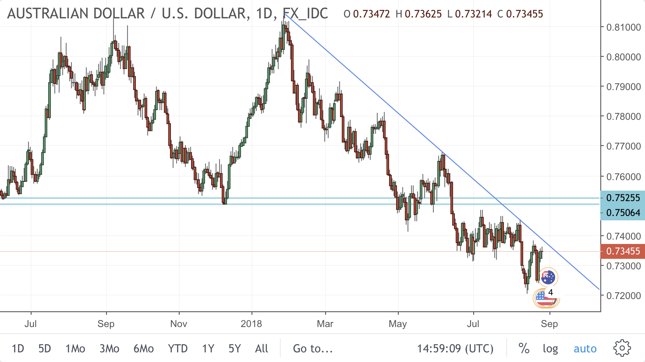 Just a quick share before I head off to sleep. Check out the Aussie dollar setup that we’ve got just starting to unfold.