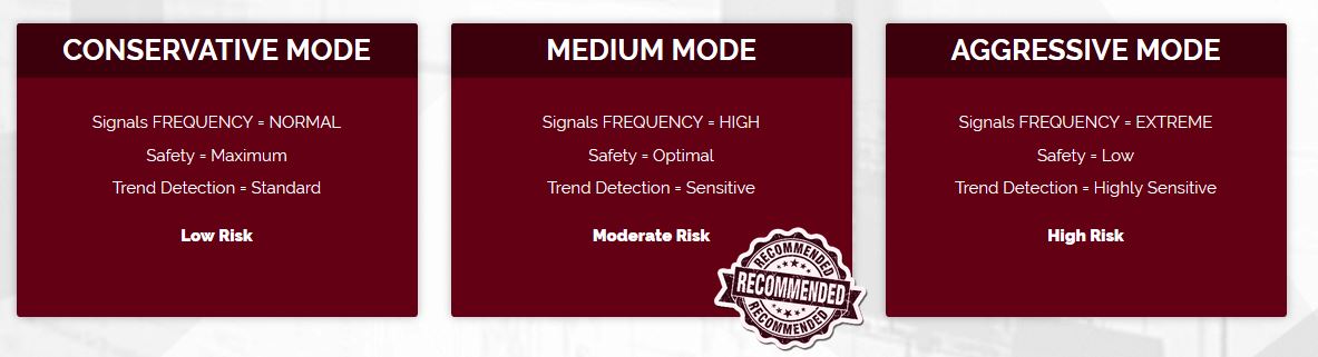 You can trade four different ways. Conservative, Medium, Aggressive and Custom.