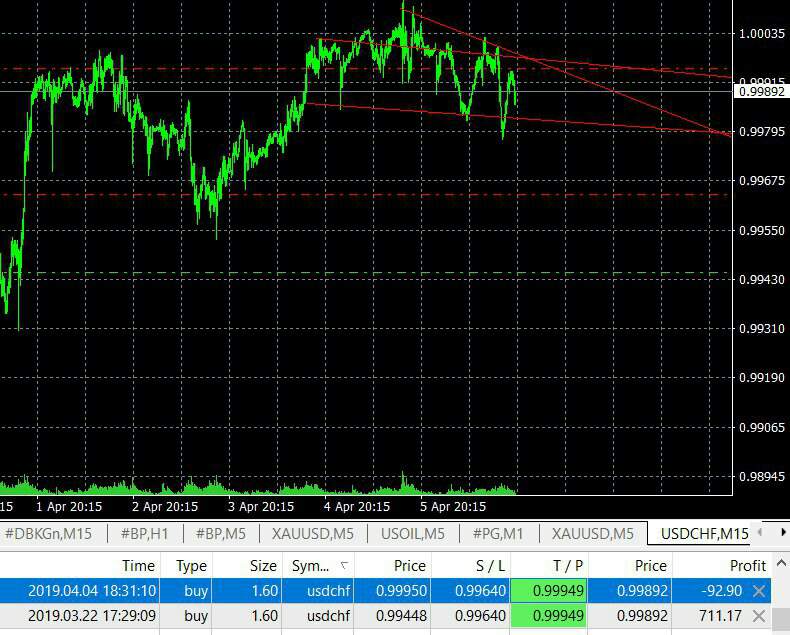The sentiment of the USD/CHF turned as the dollar slowly rebounds (from a very high level). We set the TP at the current resistance and close one of the trades break even, but overall deep in profit. We maintain our clean sheet.