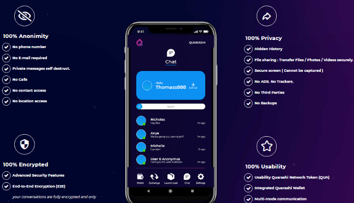 One of the distinguishing features of Quarashi Network is the development of a sophisticated Communication Platform based on Blockchain technology with an End-To-End Encryption system, which ensures that only two or more parties interact in order to gain access to it. Every communication, whether text, photos, music, or video, will be kept locally on the device and transferred through an impenetrable public blockchain network. Other security precautions used by their team include anti-screen capture, no advertisements, and a tracker that is completely decentralized and does not have access to emails, contacts, phone numbers, and so on. It is also linked to Multi-Currency Wallet, Launchpad, and Swap, making it easier to access in a single app.