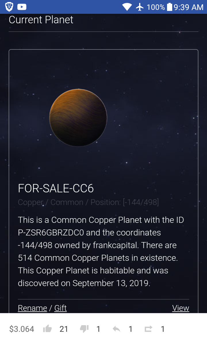 Aftet you receive CC6 please send remaining 30 STEEM balance to @frankcapital and @frankcapital will gift you one of those NEW FOUND PLANETS.