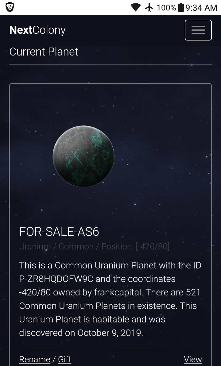 It's nice to see ALL your planets in your My Collections TAB. https://nextcolony.io/myplanets