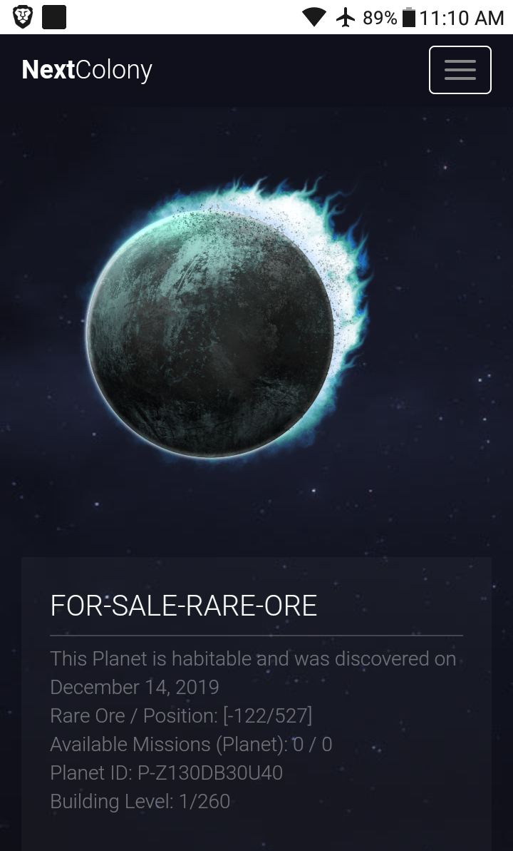 [FOR SALE] New Found @nextcolony Rare Ore Planet with Position: [-122/527] ID P-Z130DB30U40 [FOR SALE]