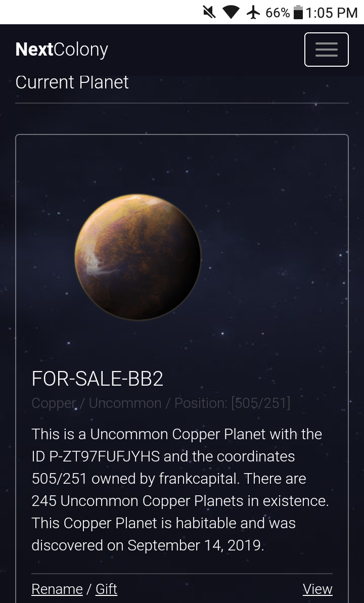 Checkout this NEW SHINY Uncommon Copper Planet in the @nextcolony galaxy.