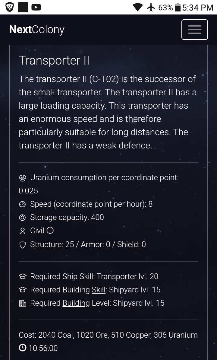 Yes. That's why the TRANSPORTER3 is VALUABLE which holds 1200 CAPACITY with SPEED 3. Now if I buy the TRANSPORTER 2 BLUEPRINT for 20 STEEM which has a SPEED 8 but only 400 CAPACITY.