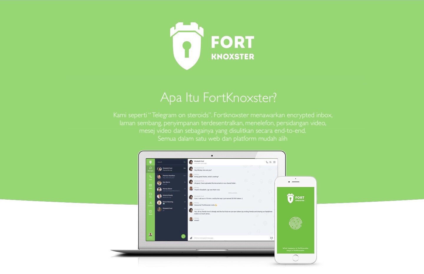 Platform FortKnoxster adalah sistem penyulitan end-to-end yang memanfaatkan teknologi Blockchain untuk mewujudkan hubungan komunikasi yang selamat dan dipercayai antara penggunanya.