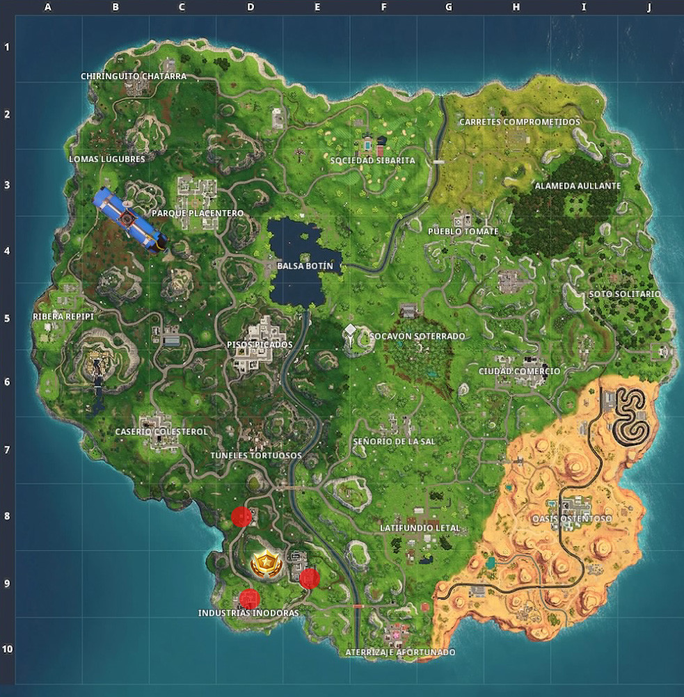 Esta misión es complicada si no hemos explorado todo el mapa o no sabemos precisamente donde se encuentran, sin embargo, gracias a este tutorial te será super facil encontrar esta estrella, pues esta en todo el punto mostrado en la imagen del mapa de fortnite.