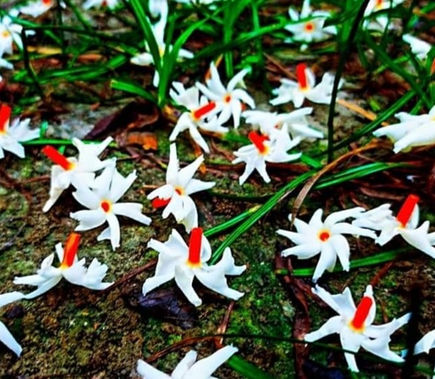 Bunganya biasanya berdiameter sekitar 2,5 cm (0,98 inci). Warnanya putih atau kuning, meskipun jarang, warnanya bisa sedikit kemerahan. Bunganya tumbuh dalam kelompok cymose dengan minimal tiga bunga, meski bisa juga menyendiri di ujung cabang. Setiap bunga memiliki sekitar empat hingga sembilan kelopak, dua lokus, dan satu hingga empat bakal biji. Mereka memiliki dua benang sari dengan filamen yang sangat pendek. Bracts berbentuk linier atau bulat telur. Kelopaknya berbentuk lonceng. Biasanya sangat harum.