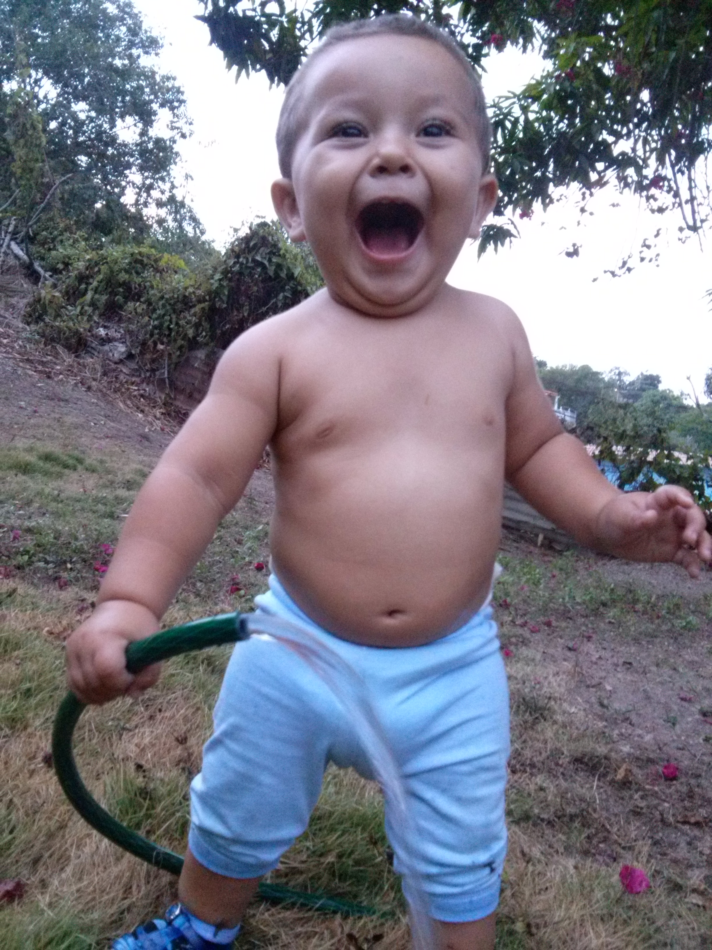 Contagious Happinesssefcelunico (30)in #foto • 8 years ago (edited)I present to Santiago my nephew of a year and a half watering the grass in the patio of the house. The freedom in a smile full of harmony and beauty in the face of a creature full of love with the happiness of watering part of the creation of God. #photography #nature #babies #happy