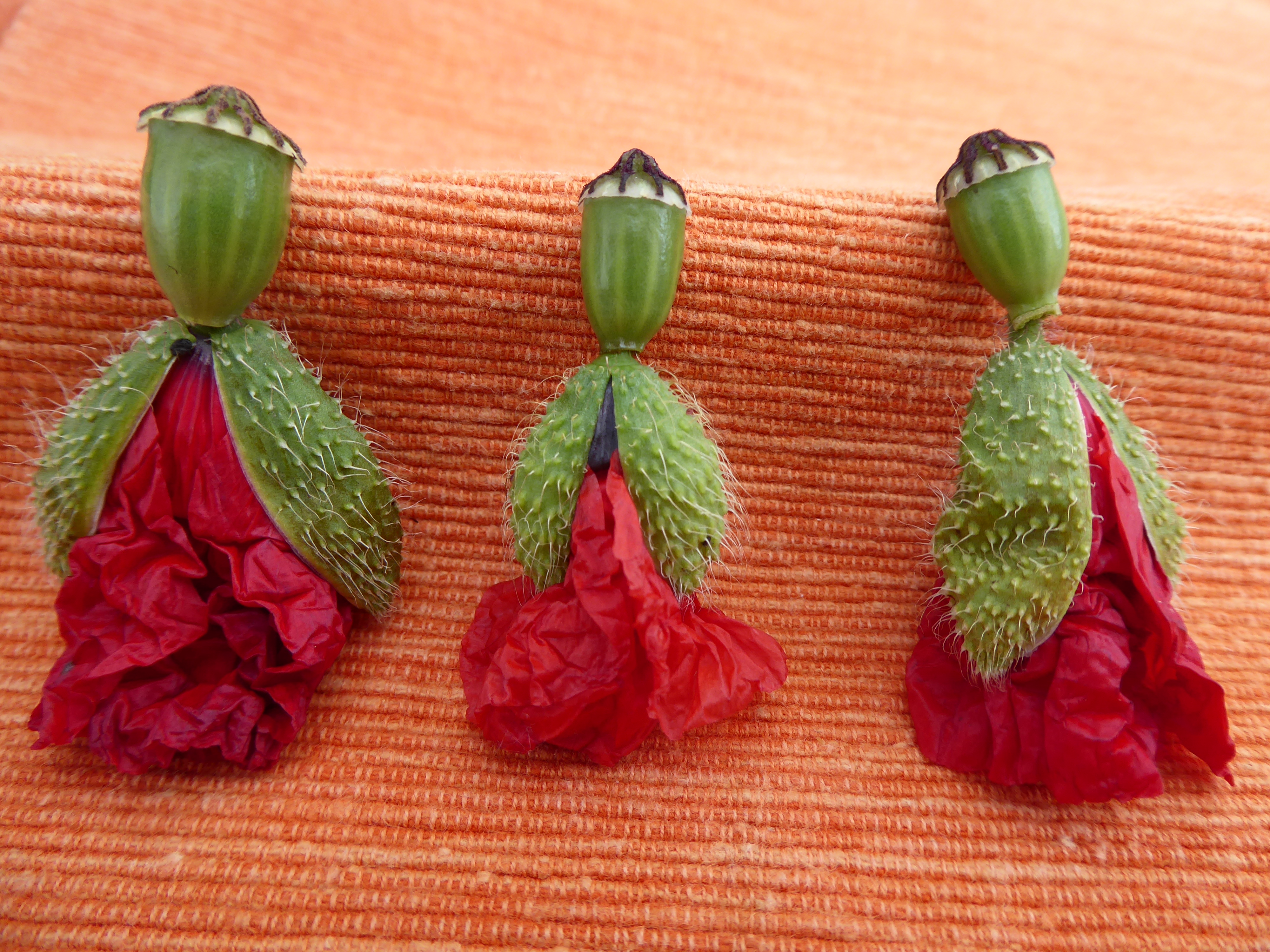 Ganz bezaubernde Fotos! Wir haben auch reichlich Klatschmohn im Garten - die Zwerge lieben es, daraus "Mohnpüppchen" zu basteln: dafür brauchst du eine Knospe die kurz davor ist sich zu öffnen und den Samenstand einer bereits verblühten Blüte. Auf die Knospe leicht drücken, so dass sie sich öffnet - die Blütenblätter vorsichtig ein wenig nach unten ziehen - schon ist ein "Körper" mit Kleidchen und grünem Jäckchen fertig. An der Knospe etwas Stiel stehen lassen, am verblüten Samenstand den Stiel abknipsen und so hast du das Köpfen mit gleichmäßigem Haarkranz... Beides vorsichtig ineinanderstecken, und schon ist das Mohnpüppchen fertig :-)