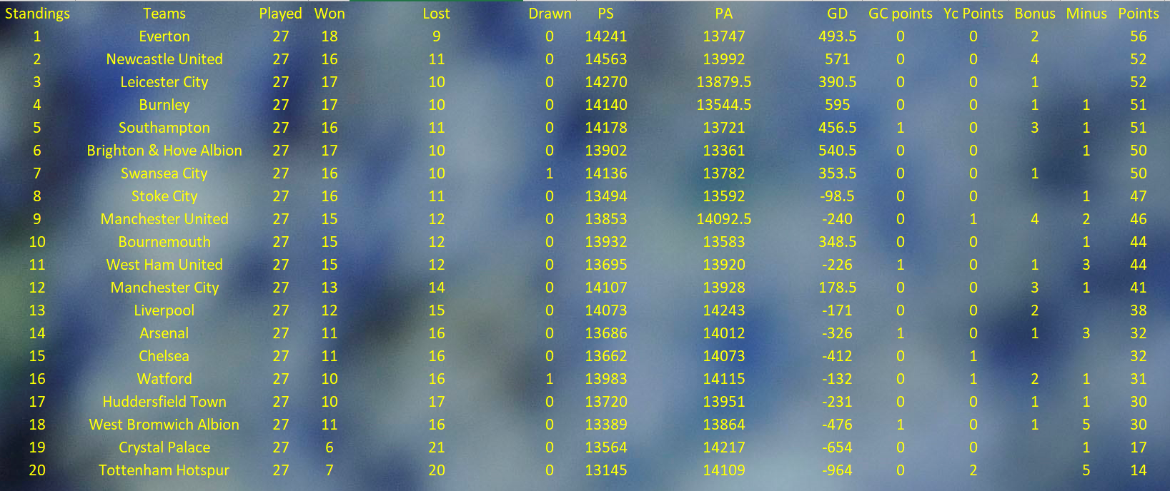 Table after GW 27: