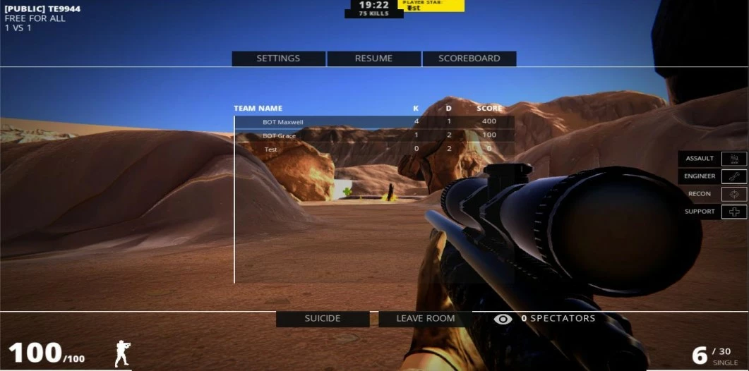 You will be able to play different modes in TGC FPShooter! Play in single player, multiplayer mode and if you belong to a clan, you will also earn points for your clan so that it rises in the ranking list of the clans.