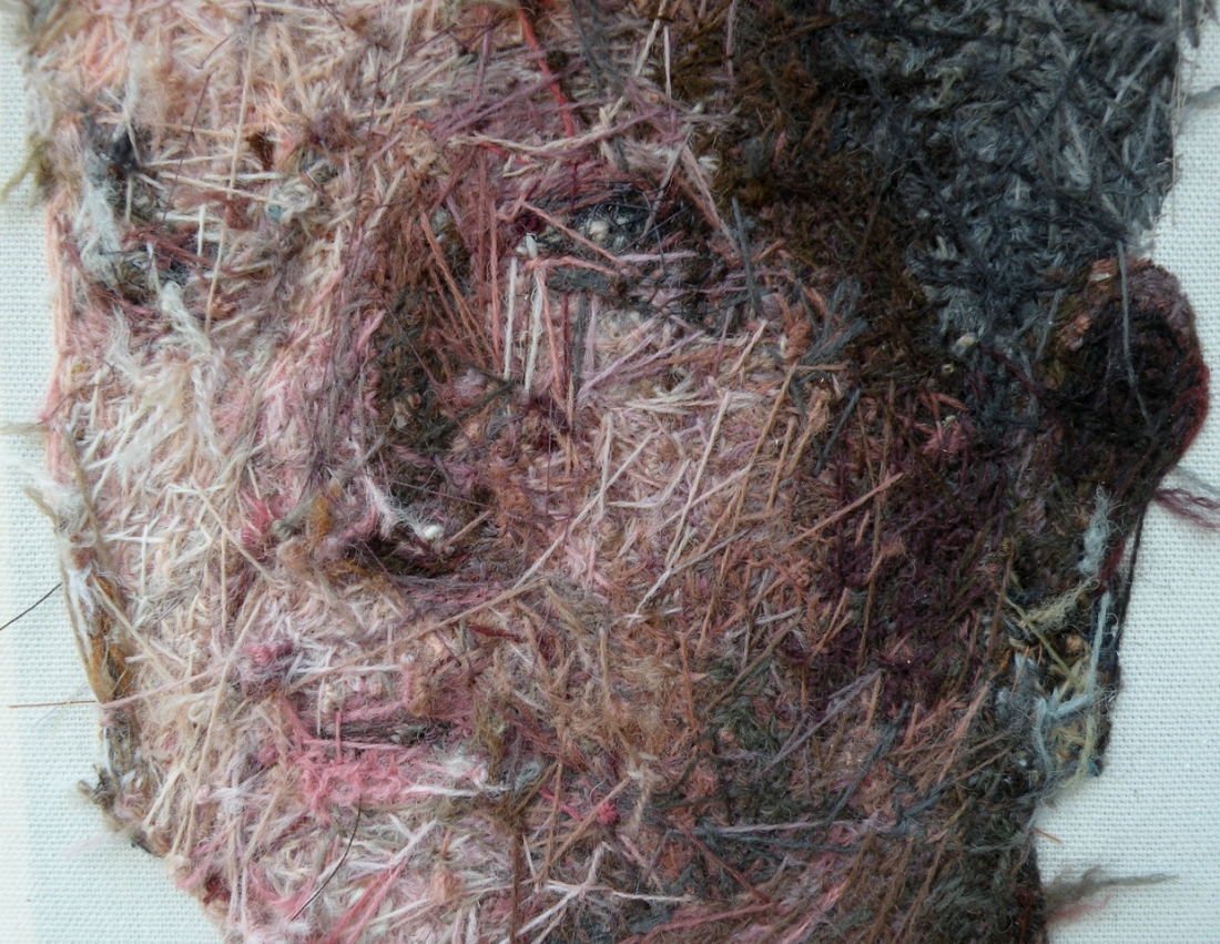 J'aime beaucoup le fait que l'artiste montre souvent l'envers de ses oeuvres ; on distingue toujours les visages, mais les fils qui s'emmêlent ajoutent quelque chose de super intéressant, de quasi abstrait.