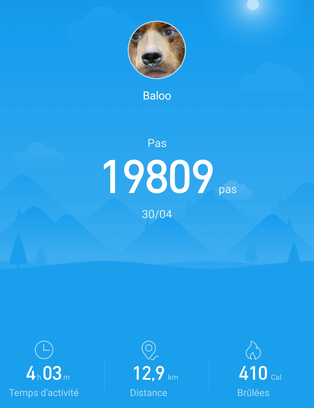 Hélas, son application @actifit ne fonctionne plus et n'a pas conséquent pas pu poster, car c'est près de 20 000 de ses pas qui ont foulé le sol durant la journée !