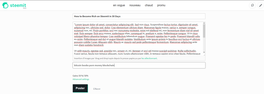 La question est: comment une tel plateforme peut survivre? Le problème c'est pourquoi acheter du steem? Pour faire de la spéculation? Il y a bien d'autre cryptomonaie qui permette de spéculer sans avoir à devoir se créé un compte qui prend une semaine.