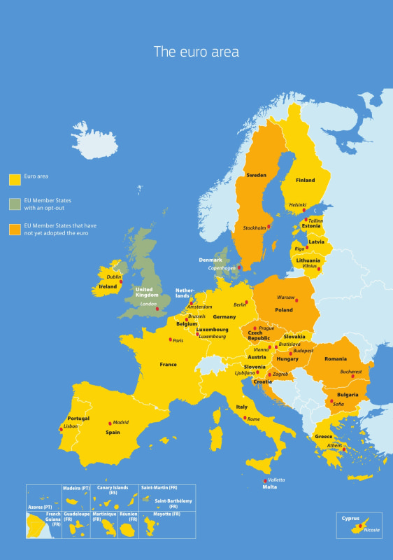 Actuellement, l'Union européenne compte 28 États membres. Parmi eux, 19 sont membres de la zone euro. Ces 19 pays partagent une même monnaie, l'euro, alors que les autres utilisent encore leurs devises nationales.