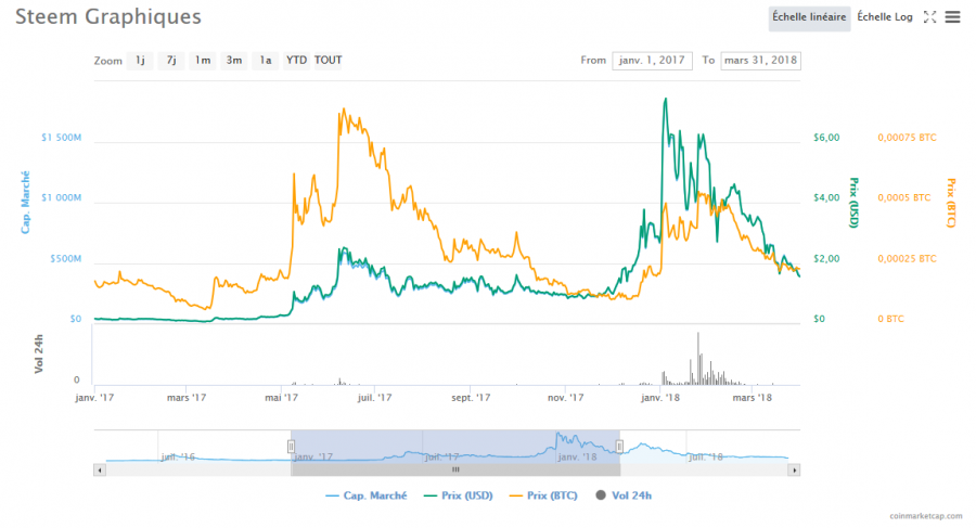 Vous l'avez probablement remarqué, ces derniers mois, le nombre de posts en français sur Steemit a diminué. Les raisons sont multiples, mais la plus évidente est la baisse du cours du Steem et du Steem Dollar, et la baisse des revenus qui a suivi. Les posts reçoivent des récompenses moins importantes, ce qui fait que les auteurs gagnent moins.