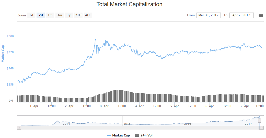 Capitalisation totale des crypto-monnaies (une semaine) :