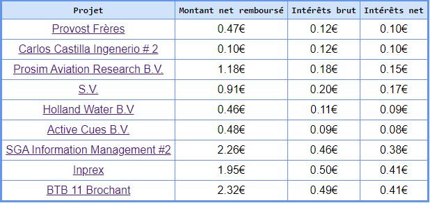 9 entreprises m'ont remboursé dont une pour laquelle il s'agissait de la première échéance.