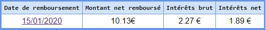 Au total, 10,13€ ont été remboursés dont 1,89€ d'intérêt.