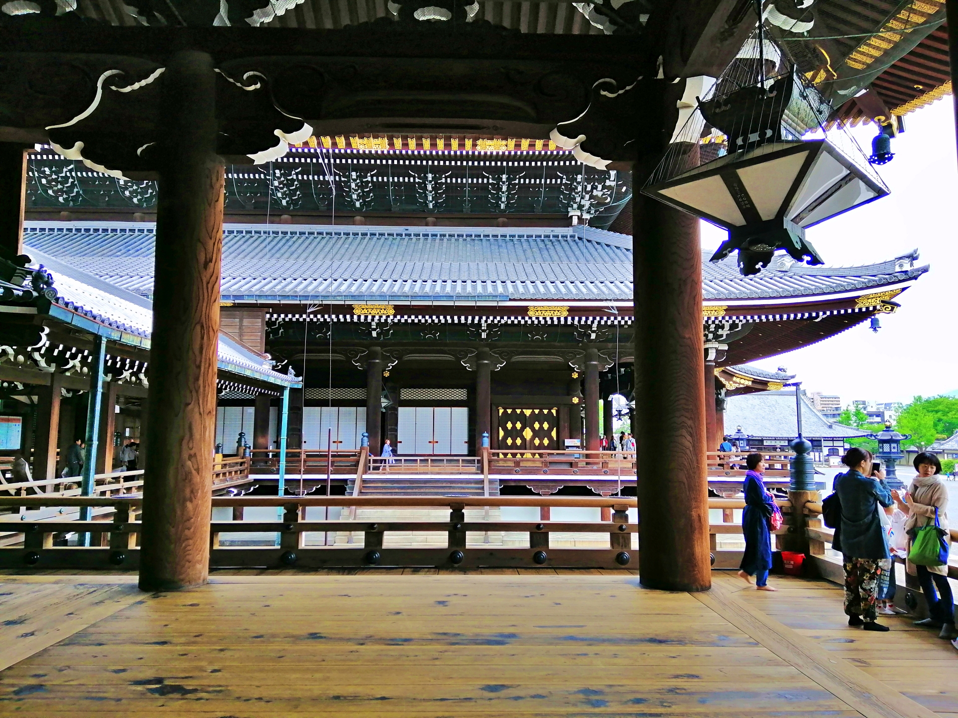 Notre premier arrêt, quelques centaines de mètres après la gare centrale de Kyoto, sera au temple Higashi-Honganji (東本願寺). Nous y entrerons par la petite porte.