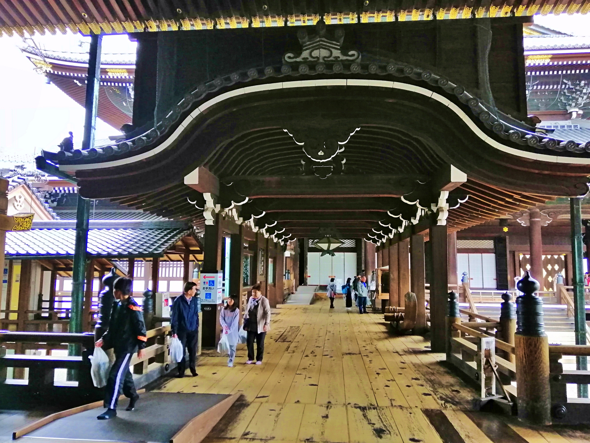 Mais rapprochons-nous un peu pour admirer le soin apporté aux détails et ce magnifique et habile travail du bois. D'autant plus qu'il faut admettre que les Japonais n'ont jamais été découragés malgré le fait que l'endroit ait été incendié 4 fois pendant la période Edo. Une belle preuve de ténacité qui impose le respect.