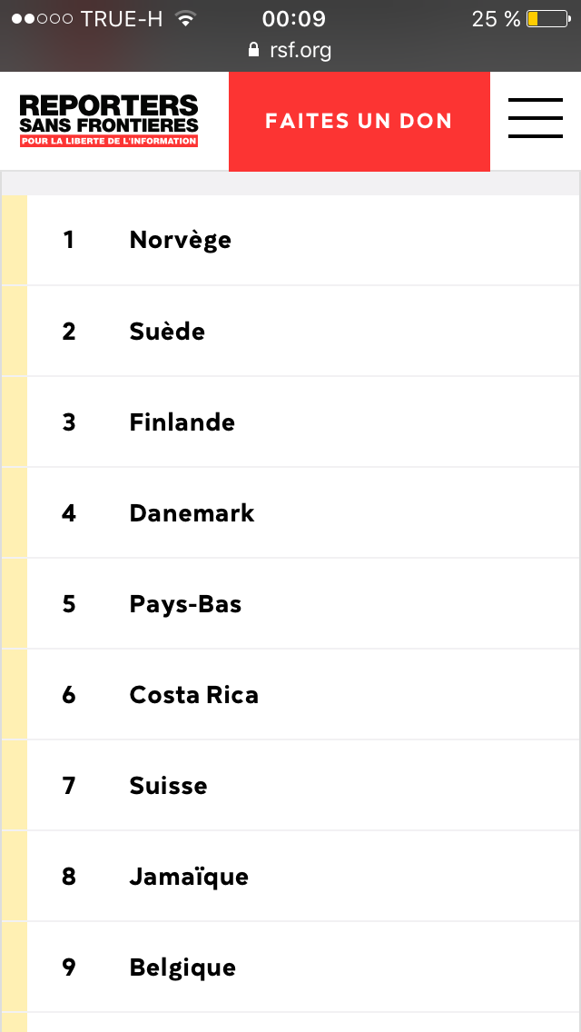 (La France siège à la 39 e place au classement de la liberté de la presse).