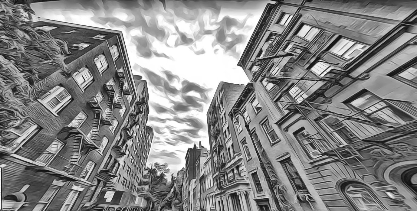 Photographie de base de la West 10th Street à l’origine sur Google Maps, recadrée avec des effets par @roused
