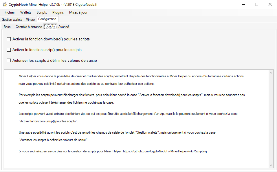 Pour apprendre à créer des scripts pour Miner Helper sans avoir de connaissance préalable en programmation une série de mini tutos est disponible ici: http://minerhelper.cryptonoob.fr/tutos-scripts/