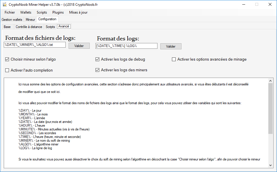 Mais jusqu'à maintenant le gros défaut de Miner Helper était son manque de documentation, mais avec la version 3.7.0b cela a été corrigé, et celui-ci est devenu encore plus simple d'utilisation car maintenant l'aide est directement intégré, et cela pour chaque onglet ou sous onglet, en plus de cela des efforts on été fait afin de rendre Miner Helper plus claire avec par exemple la séparation de la configuration en sous sections.