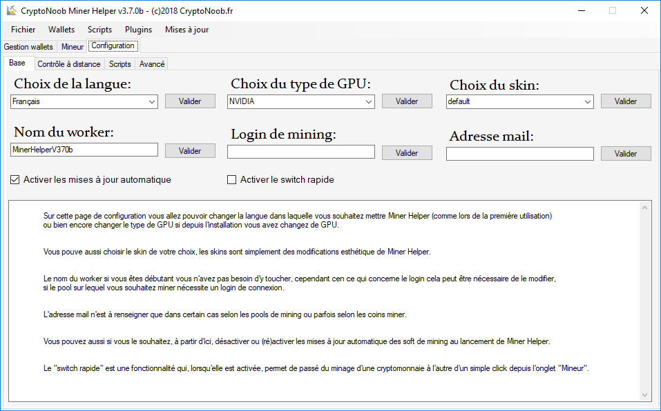 Voici maintenant quelques screenshots de la version 3.7.0b qui viens corriger le manque de documentations qu'il y avait jusqu'à maintenant sur Miner Helper: (pour les liens de téléchargement voir après les screenshots)